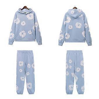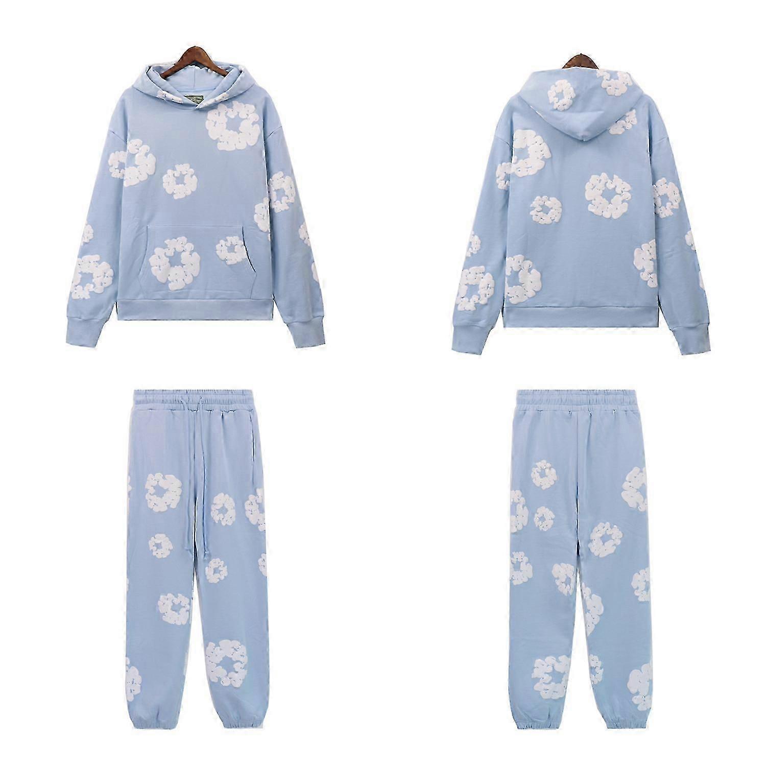 Fall and Winter New DENIM Cotton Foam Printed High Street Casual Top + Pants Set