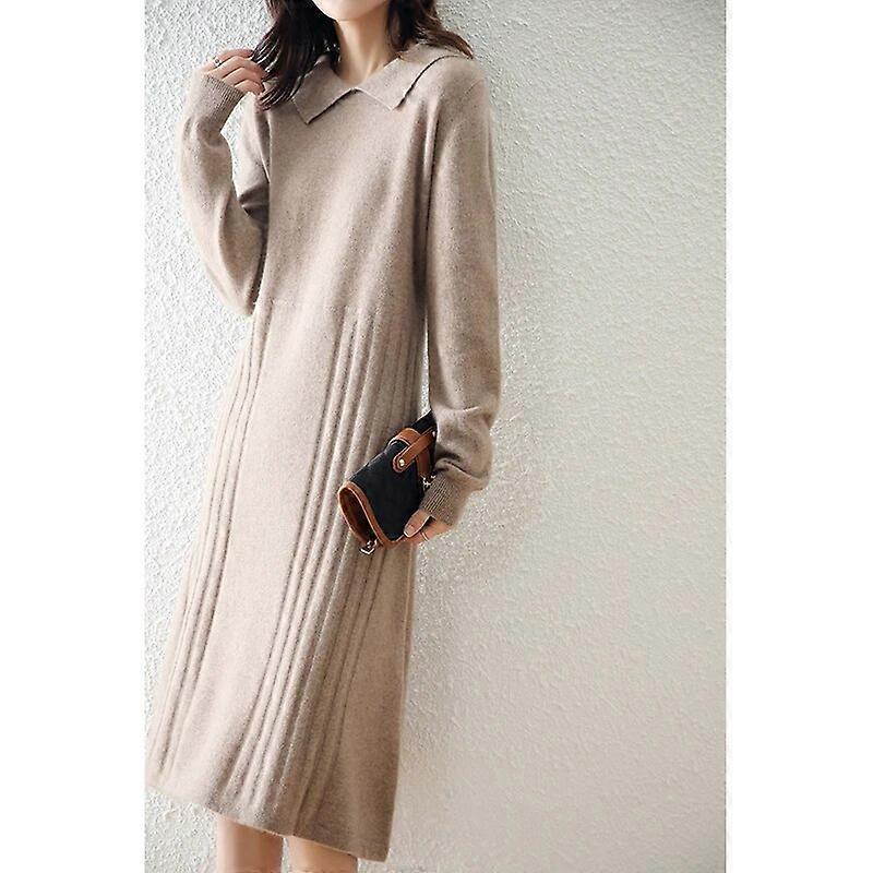 Autumn And Winter New Ladies Lapel Cashmere Knit Mid-Length Style High-End Dress Pure Wool Chic Base Sweater Skirt Loose Fashion
