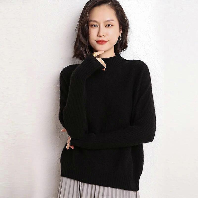Autumn And Winter Thickened Semi-High Collar Women's Pure Cashmere Loose And Elegant High-End Knitted Base Sweater Long Sleeves
