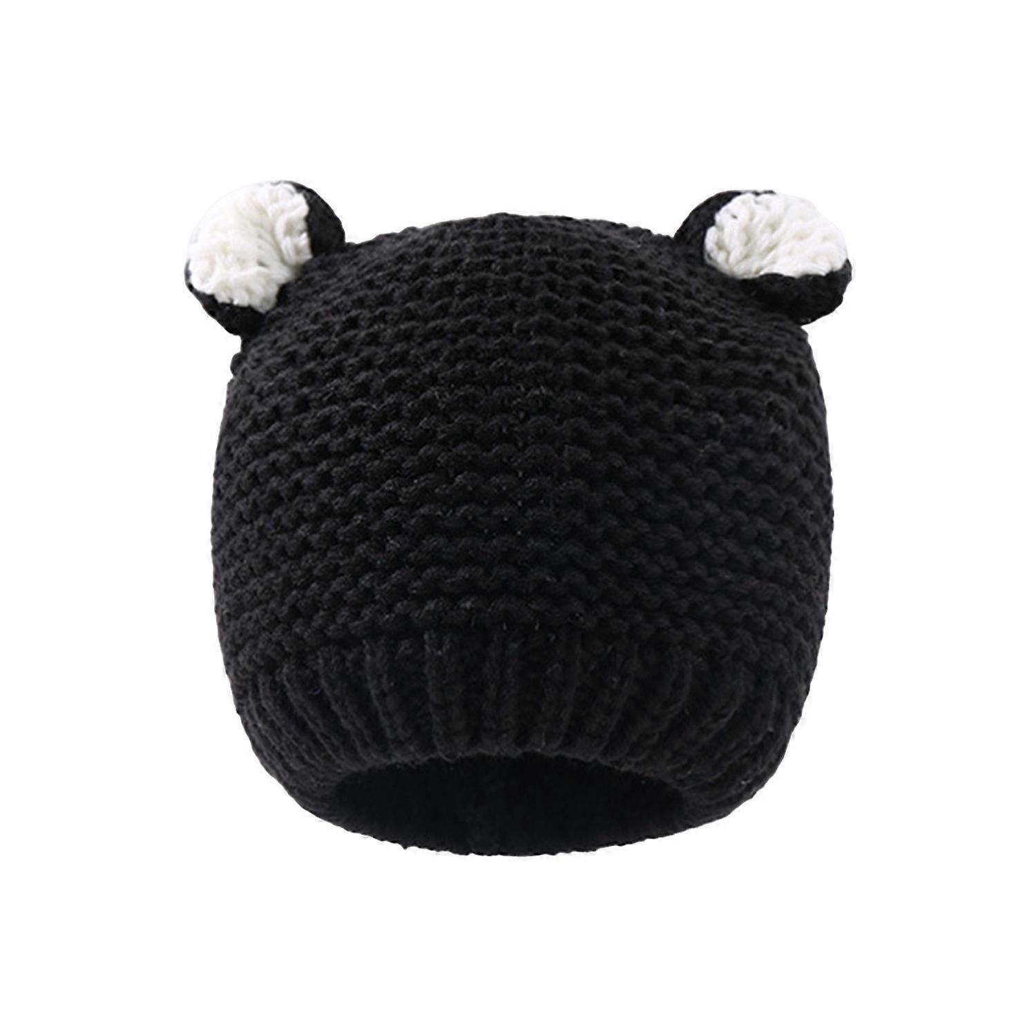 Autumn Winter Children Hat Cartoon Bear Ear Solid Color Knitted Beanie Windproof Warm Elastic Kid