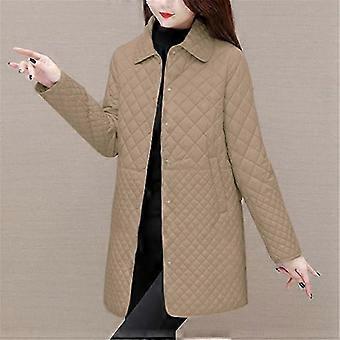 Autumn Winter Women Medium To Long Size Diamond Grid Cotton Jacket Solid Casual Thicken Warm Long Sleeve Jackets
