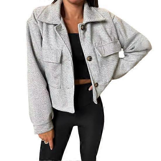 Fall Winter Women Jacket Turn-down Collar English Style Chest Pockets Windproof Outwear Single-breasted Solid Color Button Closure Commuting