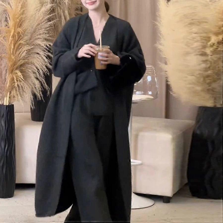 Autumn Winter Women Thick Knited Three Piece Sets Elegant Long Sleeve Sweater Coat and Single Breasted Knit Vest and Trousers