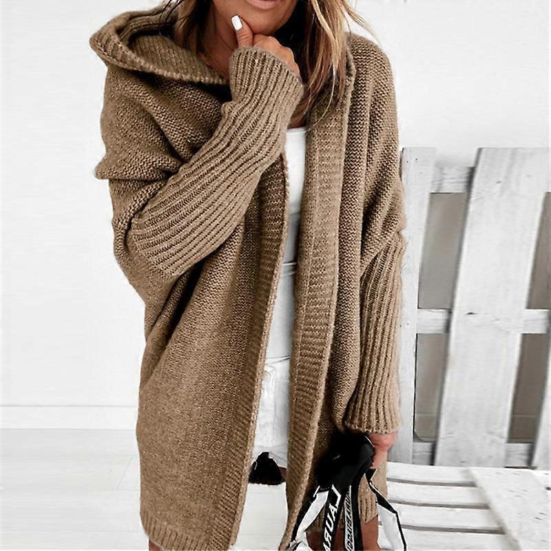 Autumn Winter Cozy Chic Hooded Cardigan Women's Casual Knit Sweater Coat Elegant Batwing Sleeve Pocket Long Jacket Jumpers