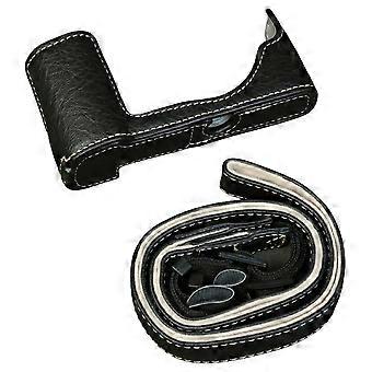 For Olympus PEN E-P7 Camera Bottom Case Buffalo Texture Battery Opening PU Leather Half Cover with Shoulder Strap Black