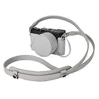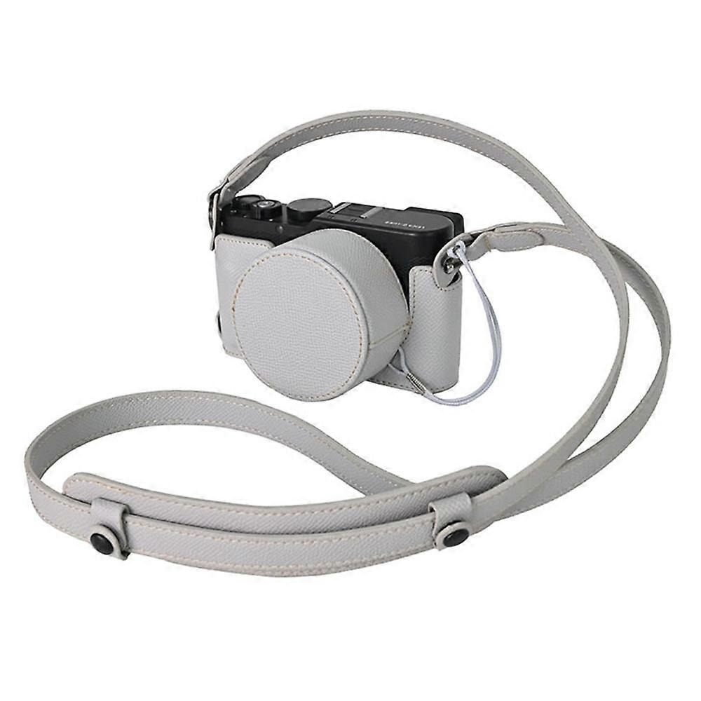 For Leica D-Lux 8 Camera Base with Lens Cap Shoulder Strap PU Leather Protective Case - White