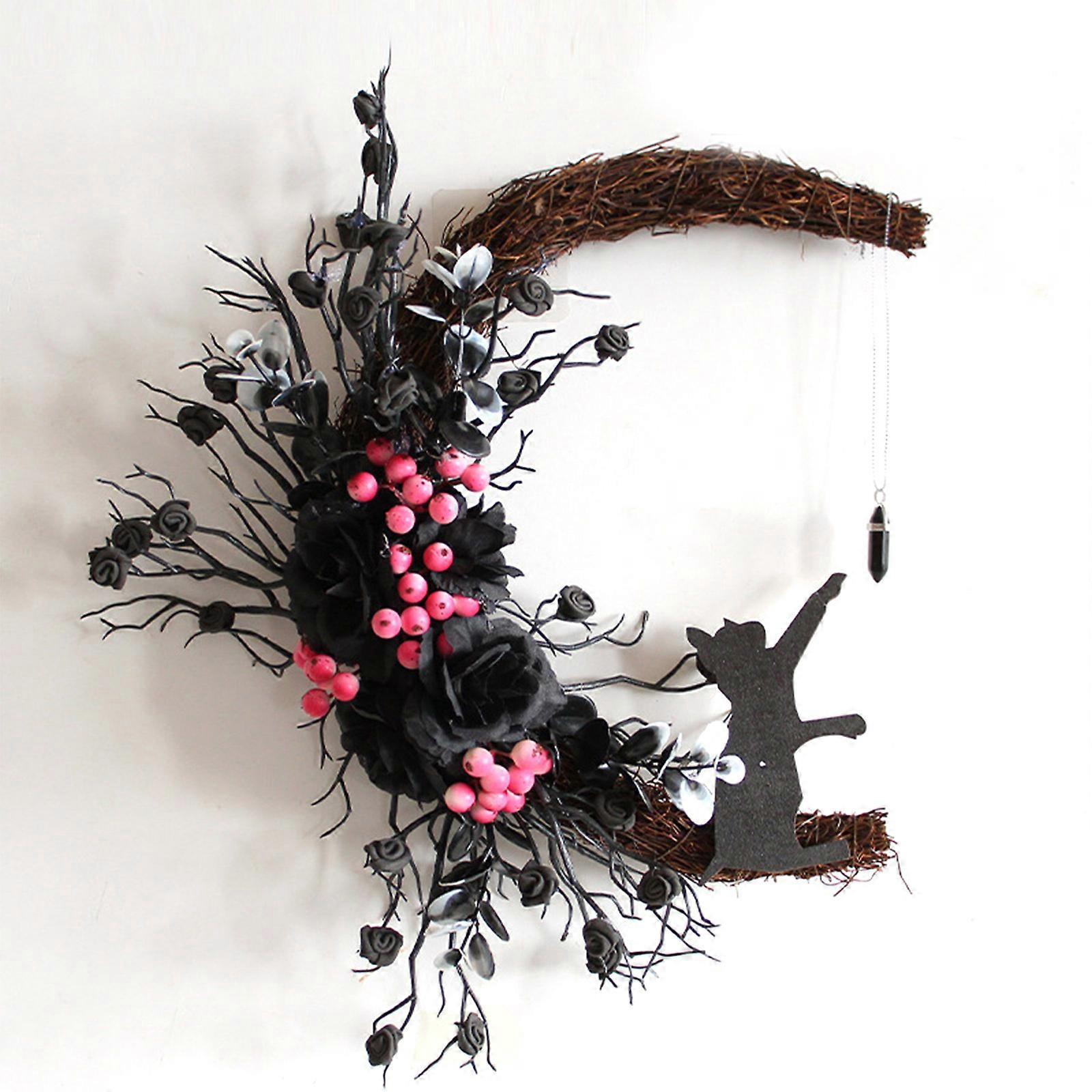 For Home Halloween Decorations Wall Hanging Art Moon Cat Garland Thanksgiving Party With Flowers Autumn Wreath