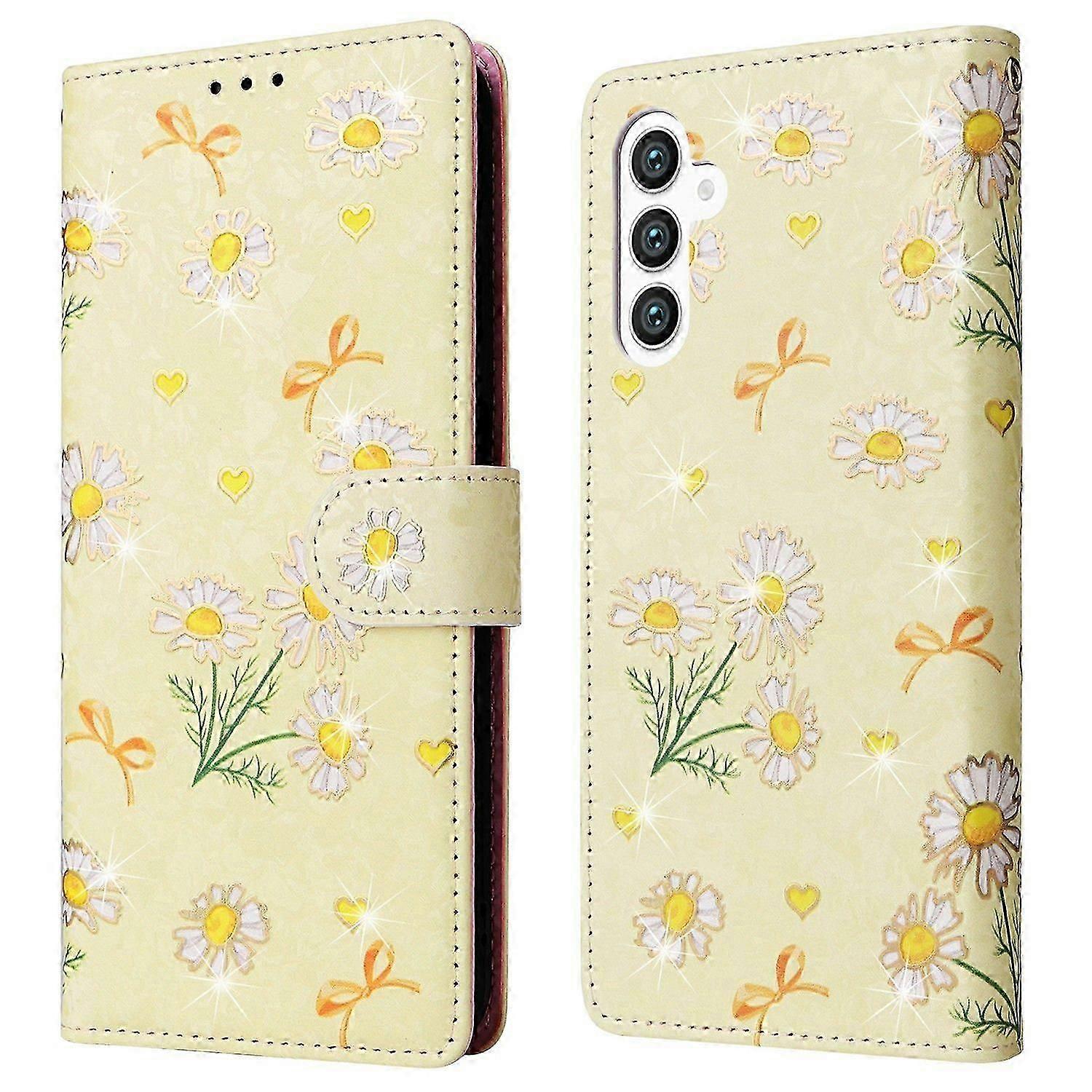 For Samsung Galaxy S25 S24 Case Rfid Blocking Flower Leather Phone Cover - Yellow Daisy