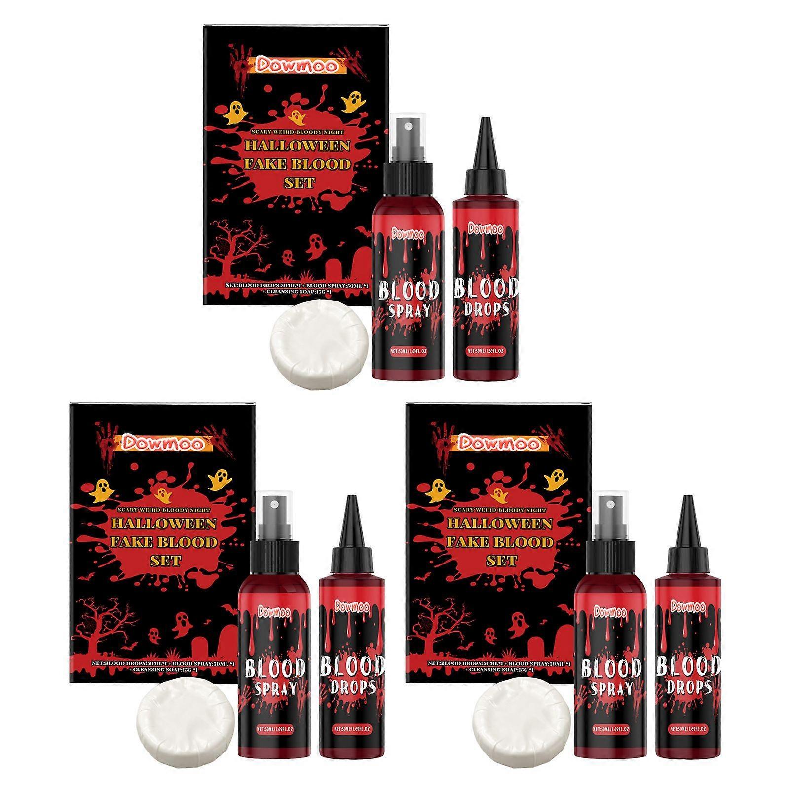 For Halloween Fake Blood Makeup Kit 50ml Fake Blood Spray+50ml Dripping Blood+15g Soaps Washable Realistics for Zombie Vampire-Monster Cosplay