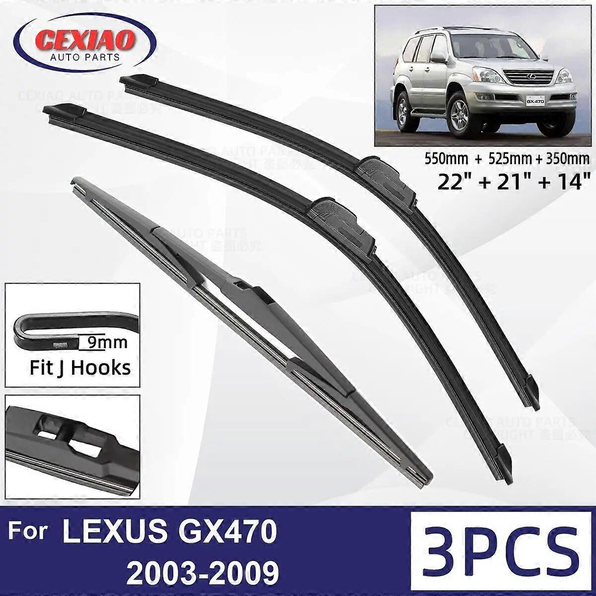 For LEXUS GX470 2003 ~ 2009 Car Front Rear Wiper Blades Soft Rubber Windscreen Wipers Auto Windshield 22"+21"+14" 2006 2007 2008 FN9U6447