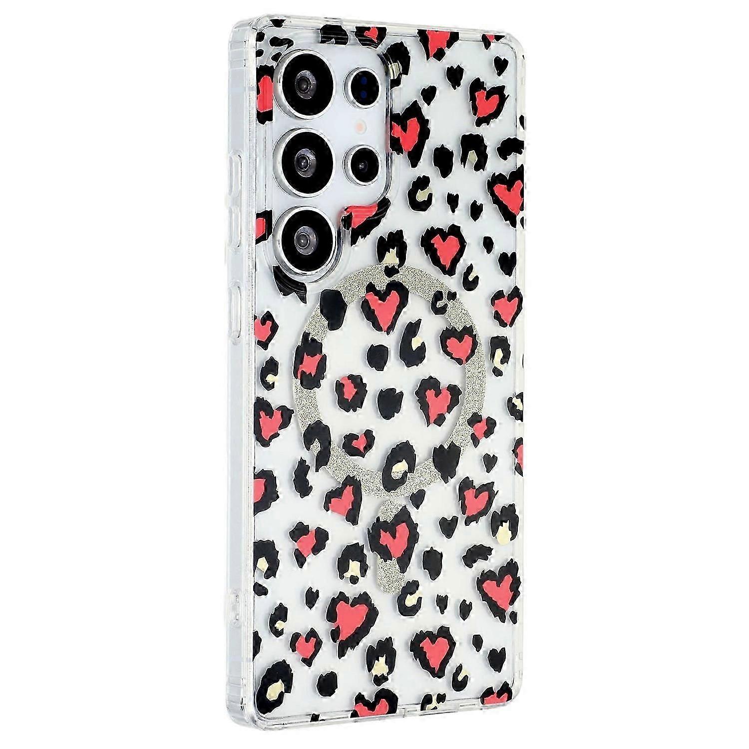 For Samsung Galaxy S24 Ultra Magnetic Case Clear Anti-yellowing Pc + Tpu Phone Back Cover Leopard Pr