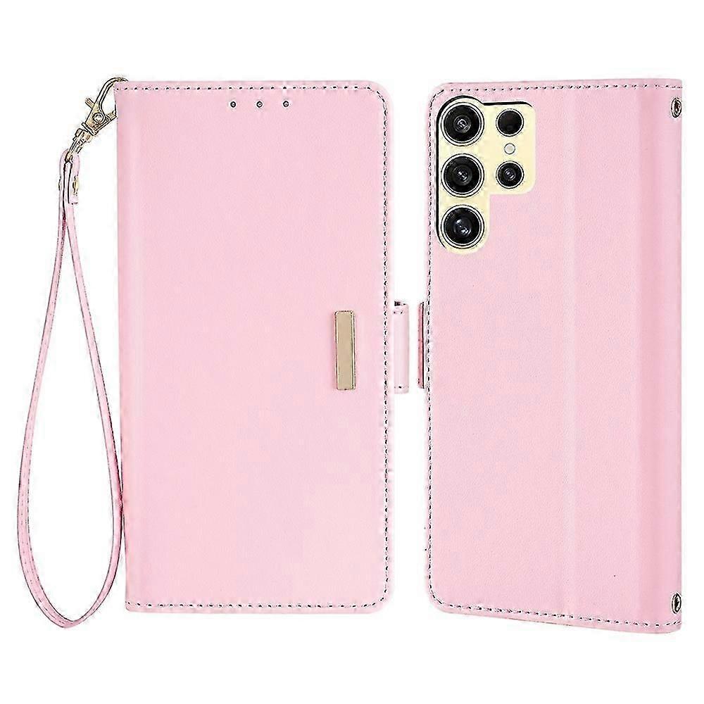 For Samsung Galaxy S24 Ultra Leather Wallet Case Rfid Blocking Stand Cover With Hand Strap - Pink