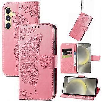 Für Samsung Galaxy S25 FE 5G Kunstleder Schmetterling Book Hülle Pink
