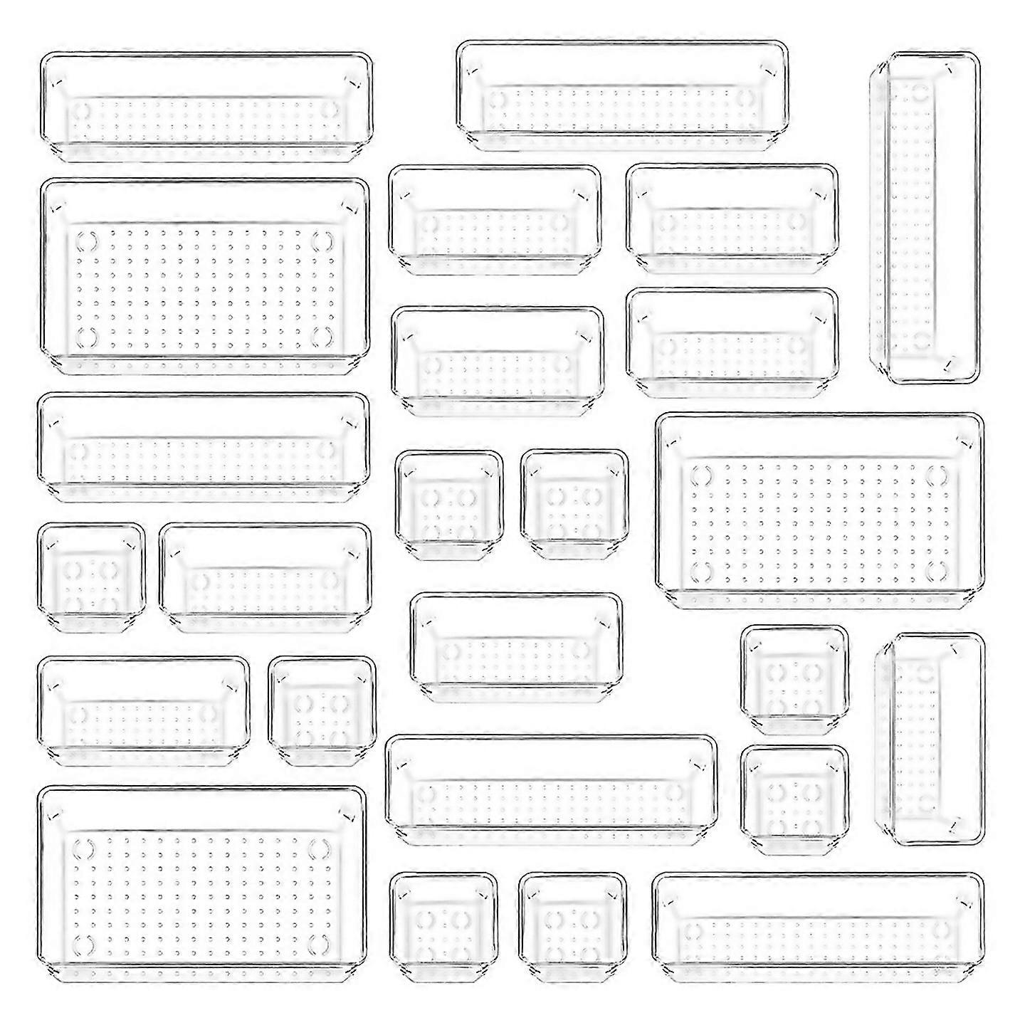 For 25pcs Plastic Drawer Organizers 4 Sizes Transparent