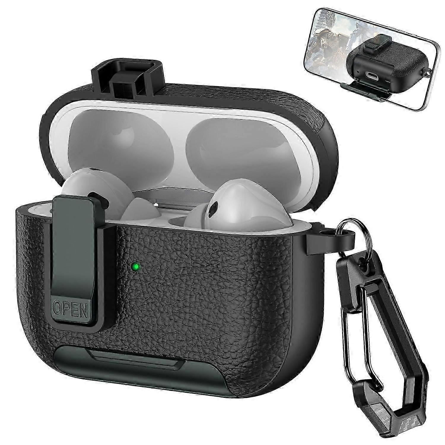 For Airpods Pro 2 Protective Case With Stand Litchi Texture Leather Tpu + Pc Earphone Cover With Loc