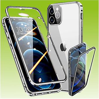 Für Apple iPhone 13 Pro Max Beidseitiger 360 Grad Magnet / Glas Case Hülle Handy Tasche Bumper Silber