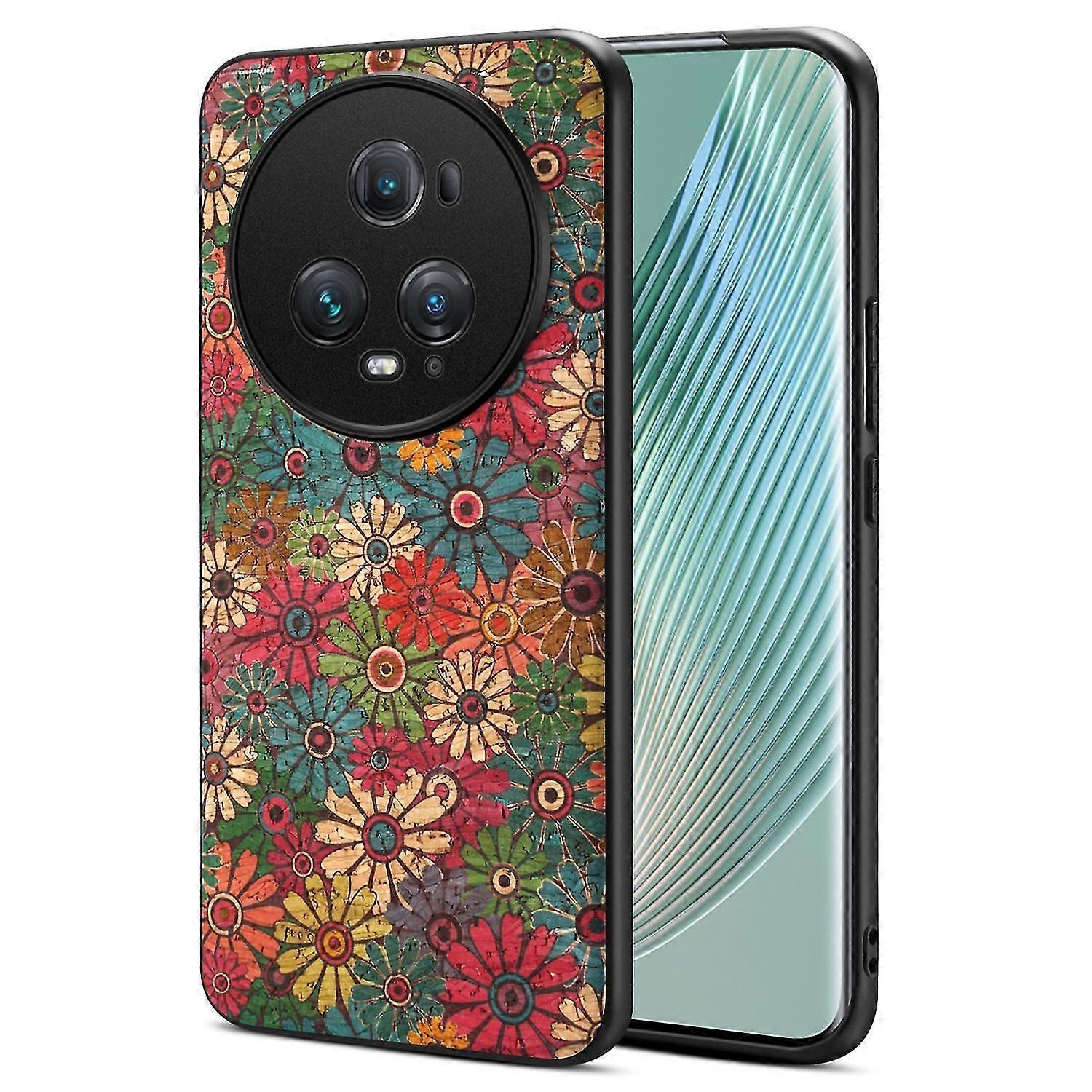 For Honor Magic5 Pro Phone Case Pu Leather Flower Series Back Cover - Spring / Green