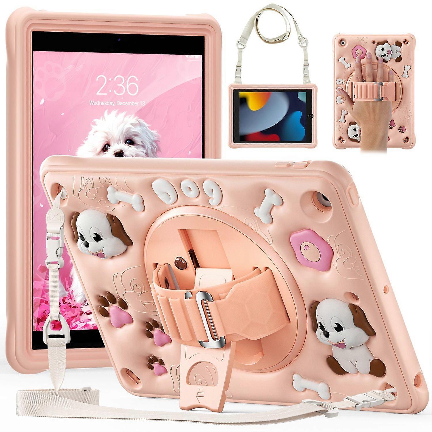 For iPad 10.2 (2021) / (2020) / (2019) Case with Shoulder Strap Kickstand Cute Dog PC+Silicone+TPU T