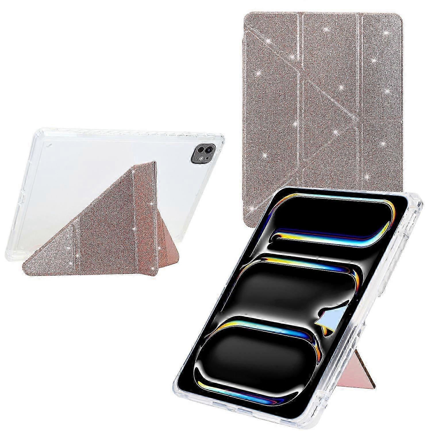 For iPad Pro 11 (2024) Case Y-Fold Stand Glitter Leather TPU Acrylic Clear Tablet Cover