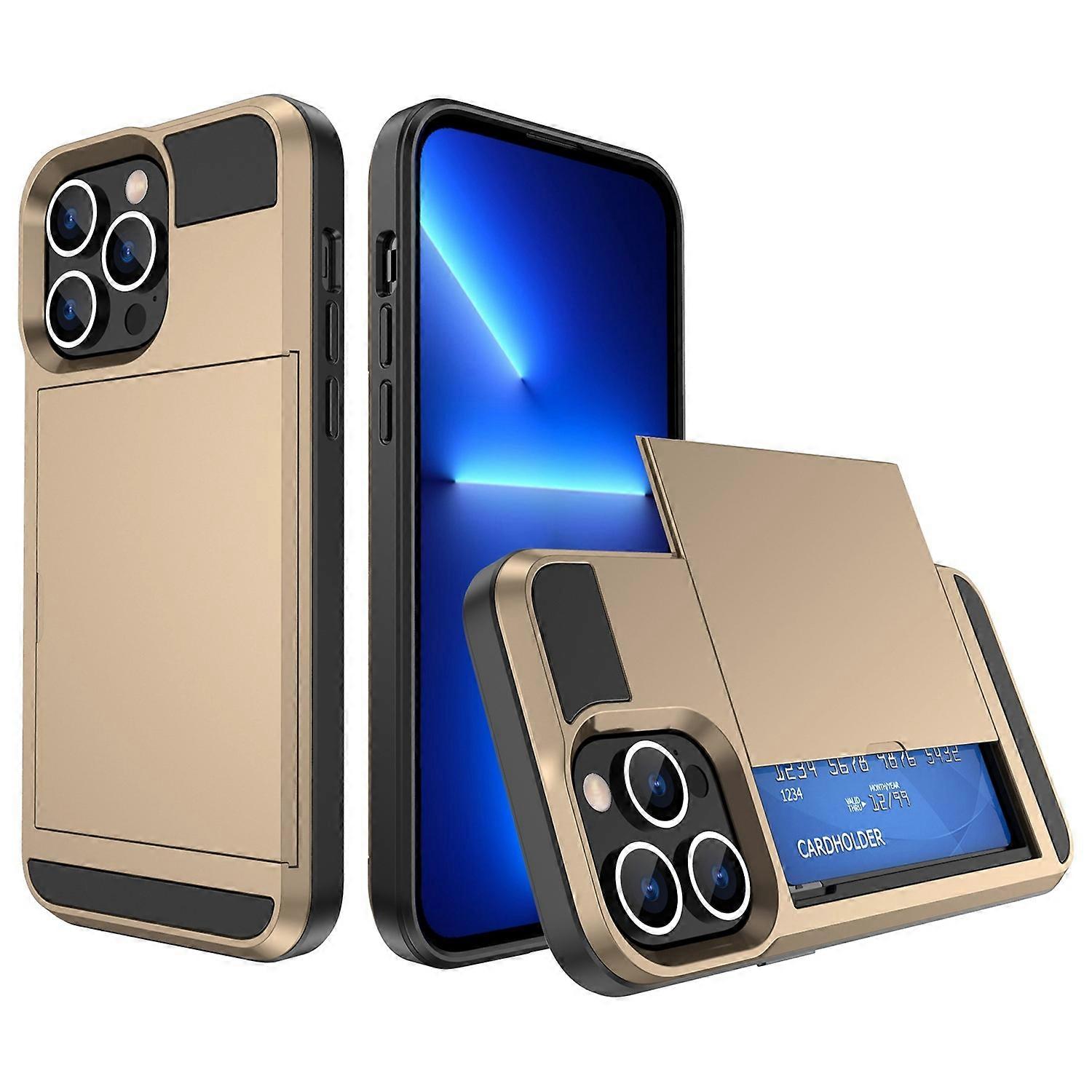 For iPhone 14 Pro Max 6.7 inch Anti-drop Phone Case with Sliding Cover Design Card Holder PC + TPU H