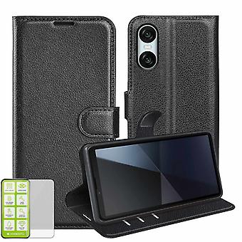 Für Sony Xperia 10 VI Kunst Leder Book Wallet Tasche Schwarz + H9 Glas