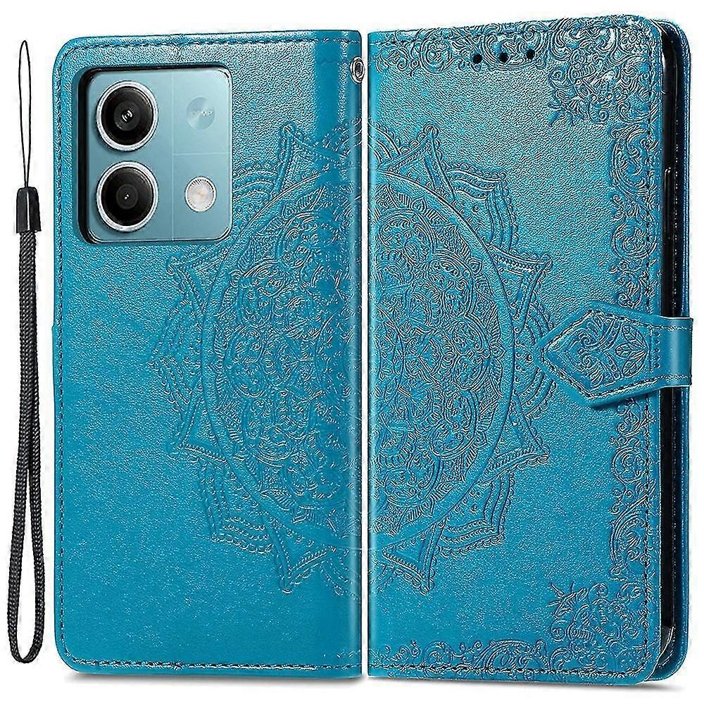 For Xiaomi Redmi Note 13 4g Leather Case Wallet Card Slots Phone Cover Mandala Embossed - Blue