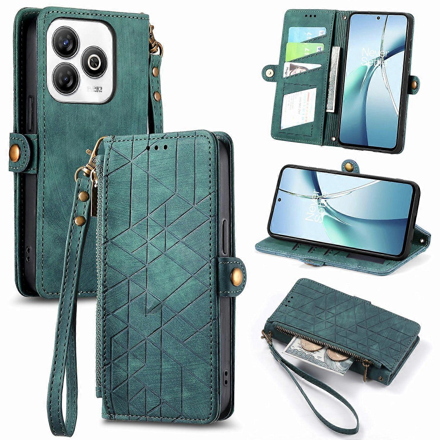 Für ZTE Blade A75 4G Design Kunstleder Zipper Book Wallet Tasche Grün