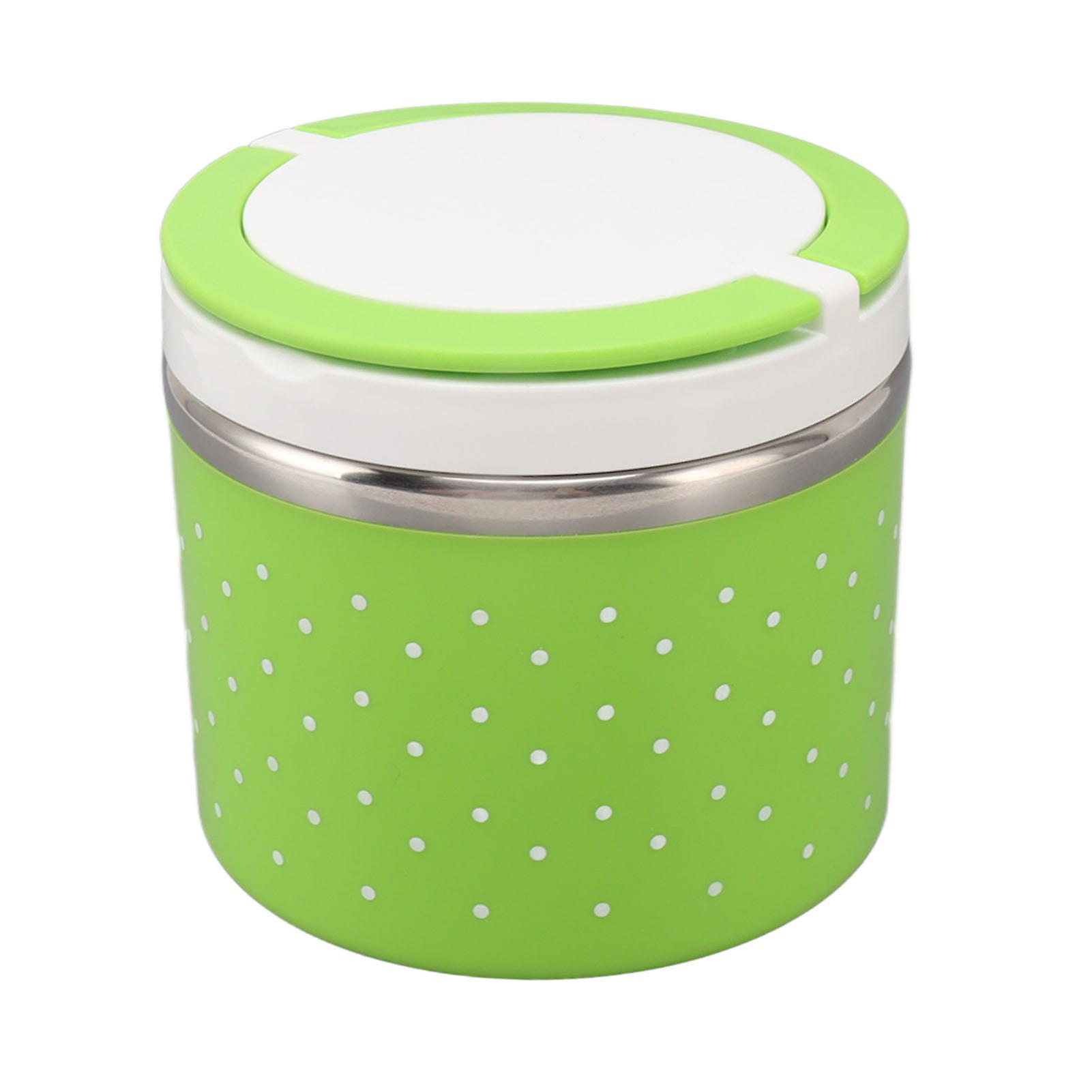 Round Insulated Lunch Box Leakage Proof Portable Large Thermal Food Container for School Office Travel Green