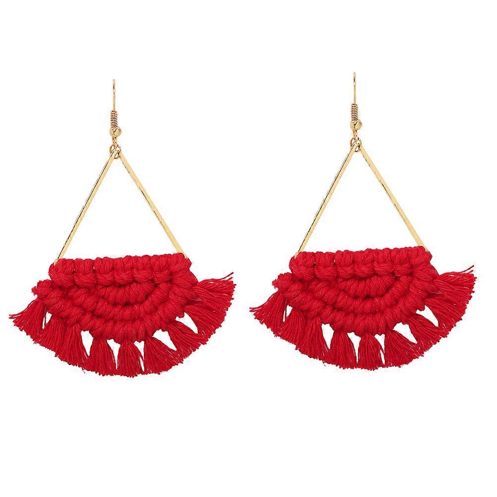 Bohemian Style Earrings 1Pair Red Cloth Lightweight Comfort for Decor Chic Woven Earrings