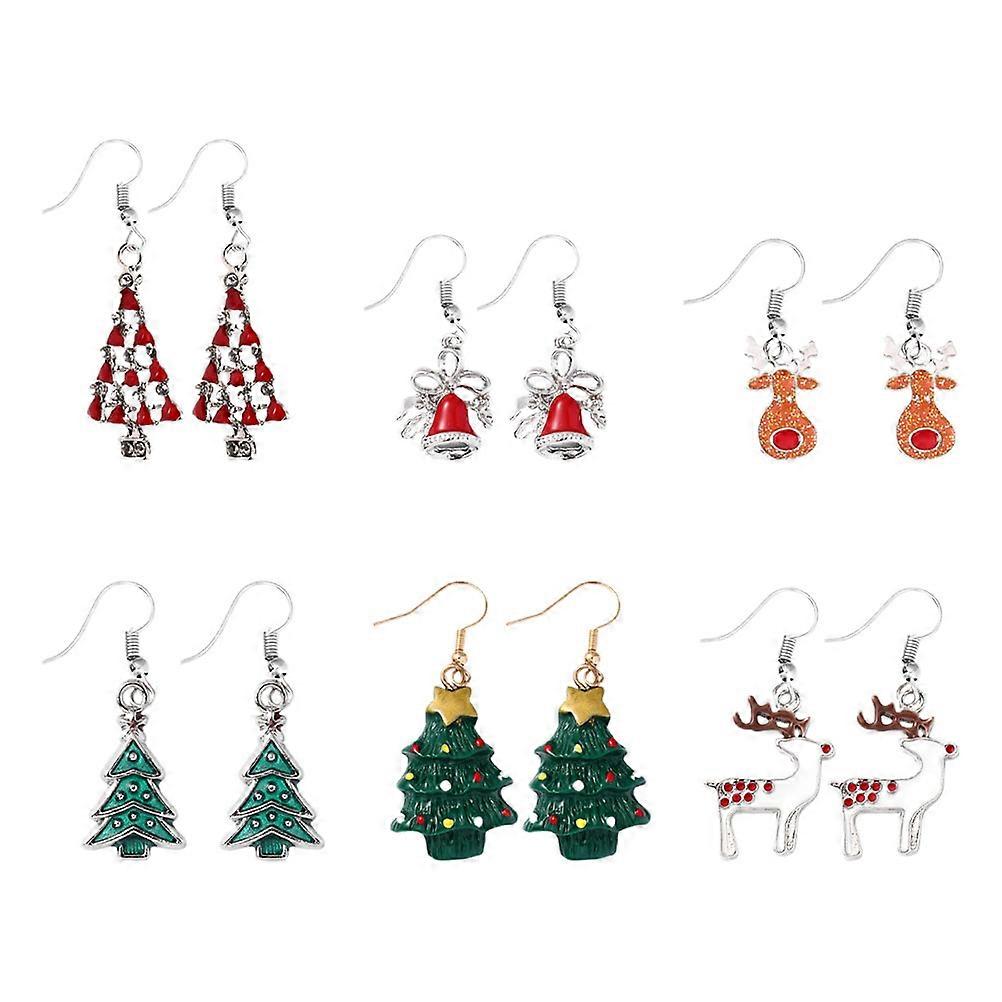 Festive Earrings for Women Random Style Alloy Christmas Theme 6 Pairs