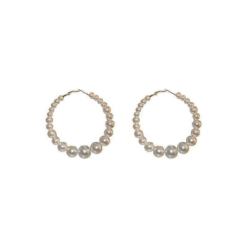 Material: Imitation Pearl Processing Technology: Electroplating Design: Large size circle geometric earring with silver needle, minimalist and elegant style, presenting a sense of sophistication. Color: As shown in the picture