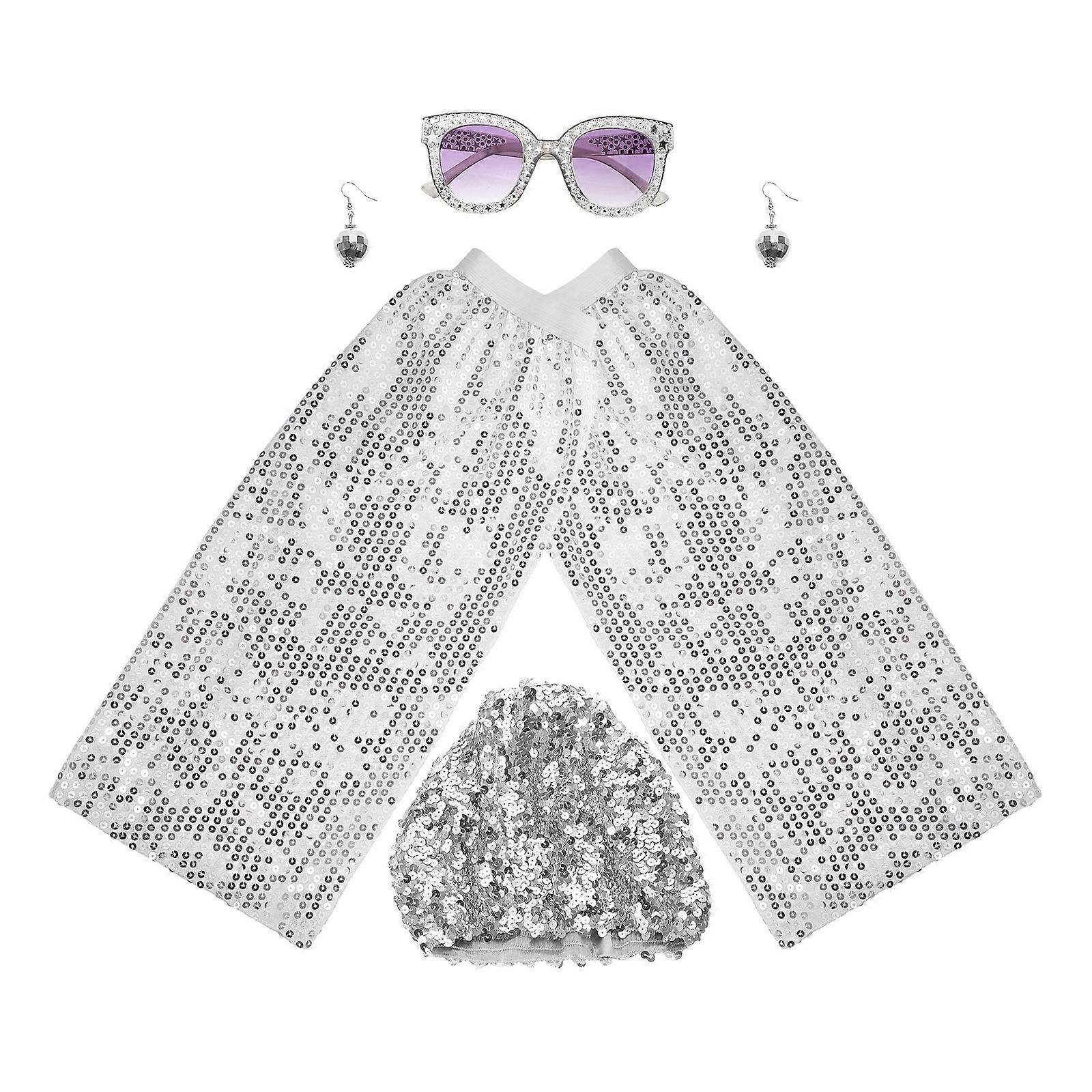 Sparkly Disco Earrings Retro Disco Party Costume Set For Women With Sequin Hat Ball Earrings And Leg Warmers For Hip Hop Events 1Set