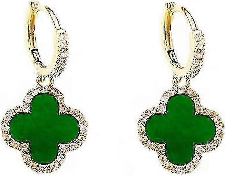 Gold Dangle Earrings, 14K Gold Plated Small Huggie Hoop Earrings with Charms Four-leaf Clover, Dainty Drop Dangle Earrings for Women, Resin Cubic