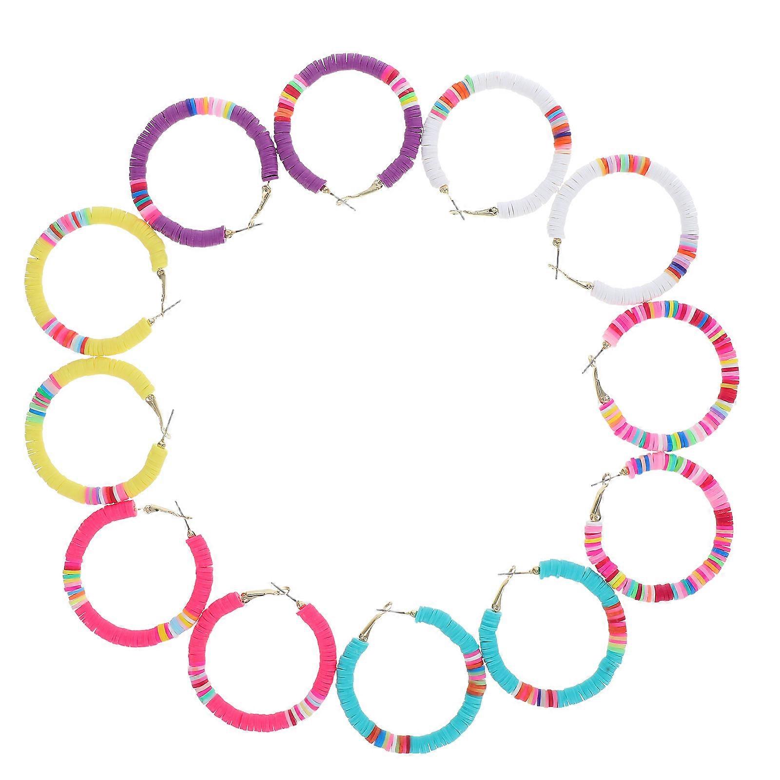 Vinyl Disc Beads Earrings Polymer Clay Beaded Hoops Earrings for Women 24Pairs