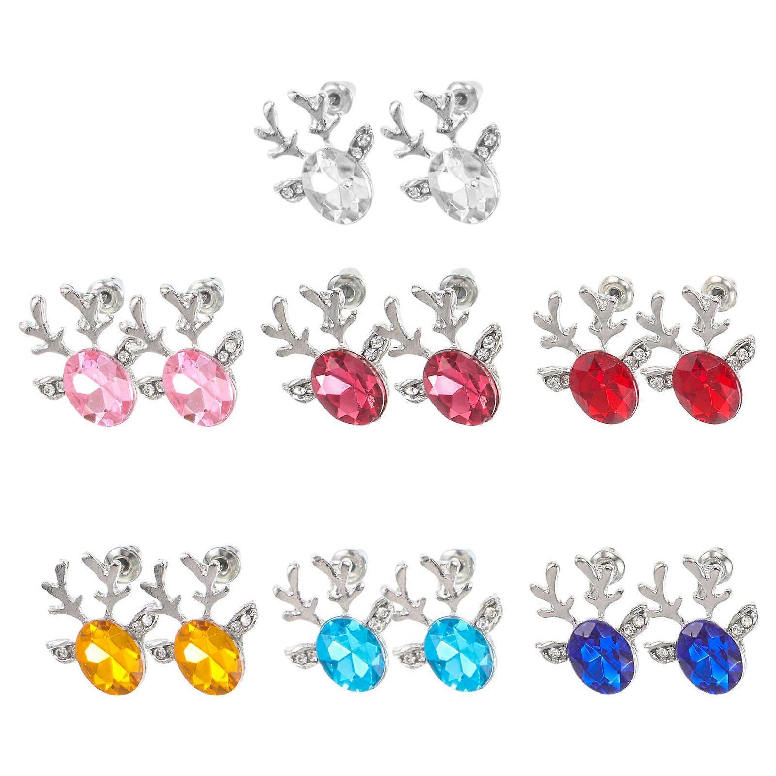 Festive Drop Earrings Reindeer Antler Earrings White Stainless Steel For Anniversary Sparkly Dangle 14Pcs