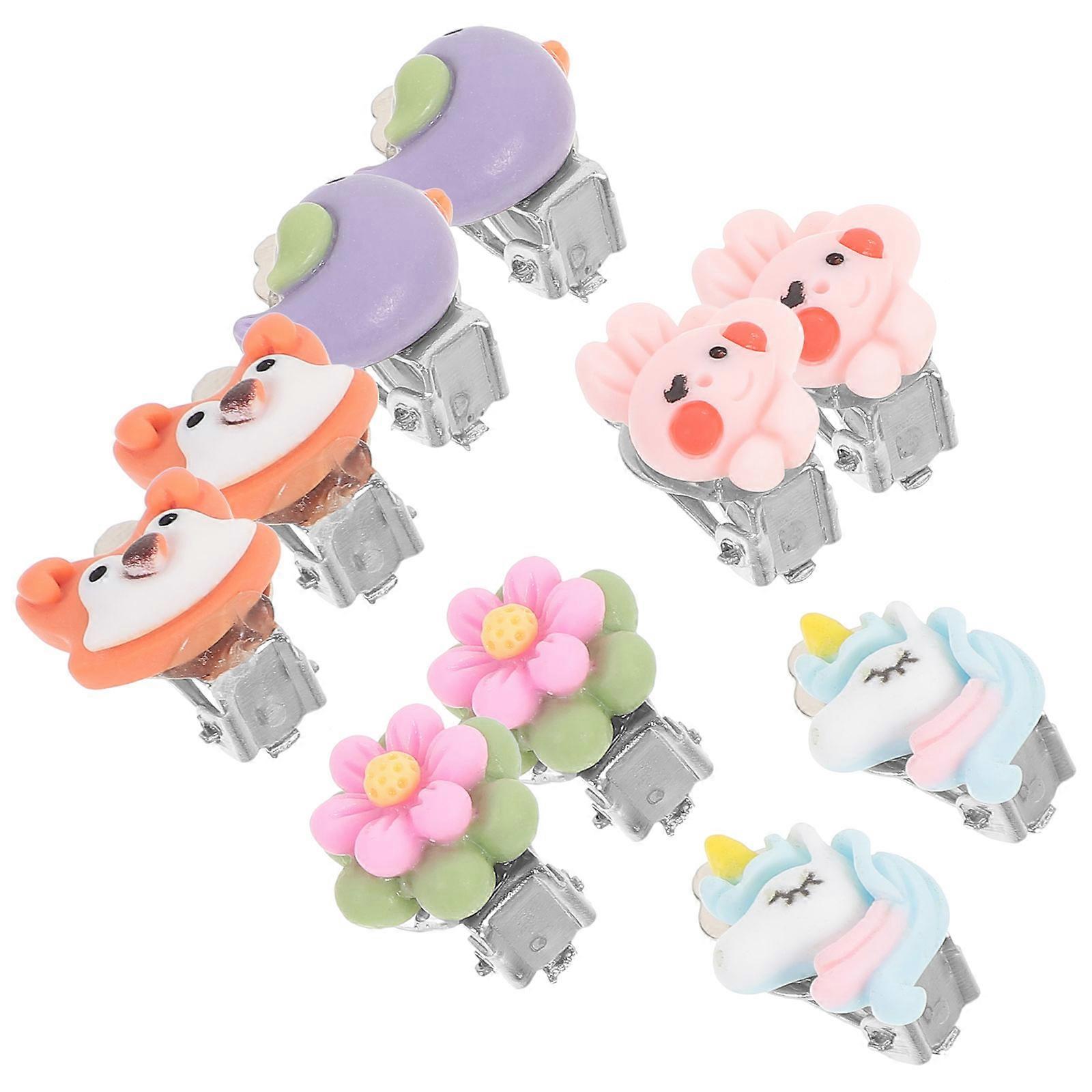 Girl Earrings Childrens Cute Cartoon Ear Clips For Anniversaries Assorted Color 5Pairs