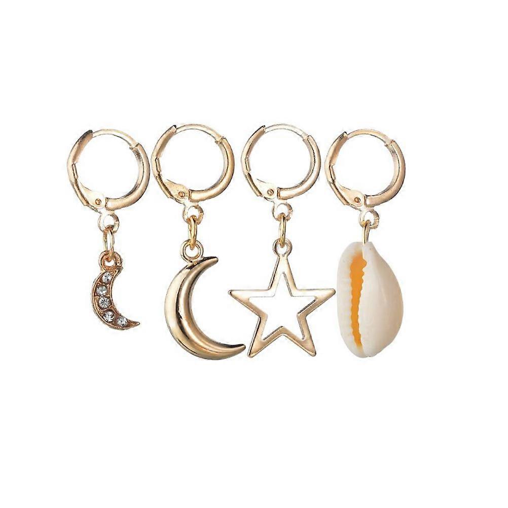 Moon Star Earrings for Women Girls Elegant Ear Clips Creative Dangler 3.4x2.8x1cm 2Pair