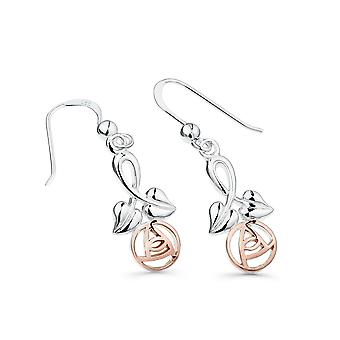 Sterling Silver Earrings - Charles Rennie Mackintosh Rose + Leaves + Rose Gold Plated