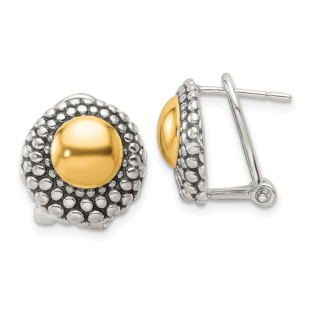 925 Sterling Silver Oxidized and Gold tone Circle Omega Back Post Earrings 13.7x13.6mm Wide Stud Earring for Women