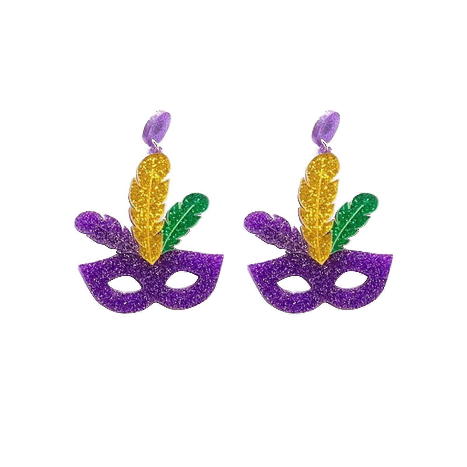 Mardi Gras Earrings Mask Lips Hat Lobster Modelling, Mardi Gras Dangle Earrings for Women Girls Holiday Jewelry Gifts