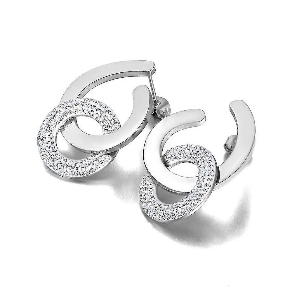 Titanium Stainless Steel Geometric Circle Earrings For Women Trendy Cz Crystal Party