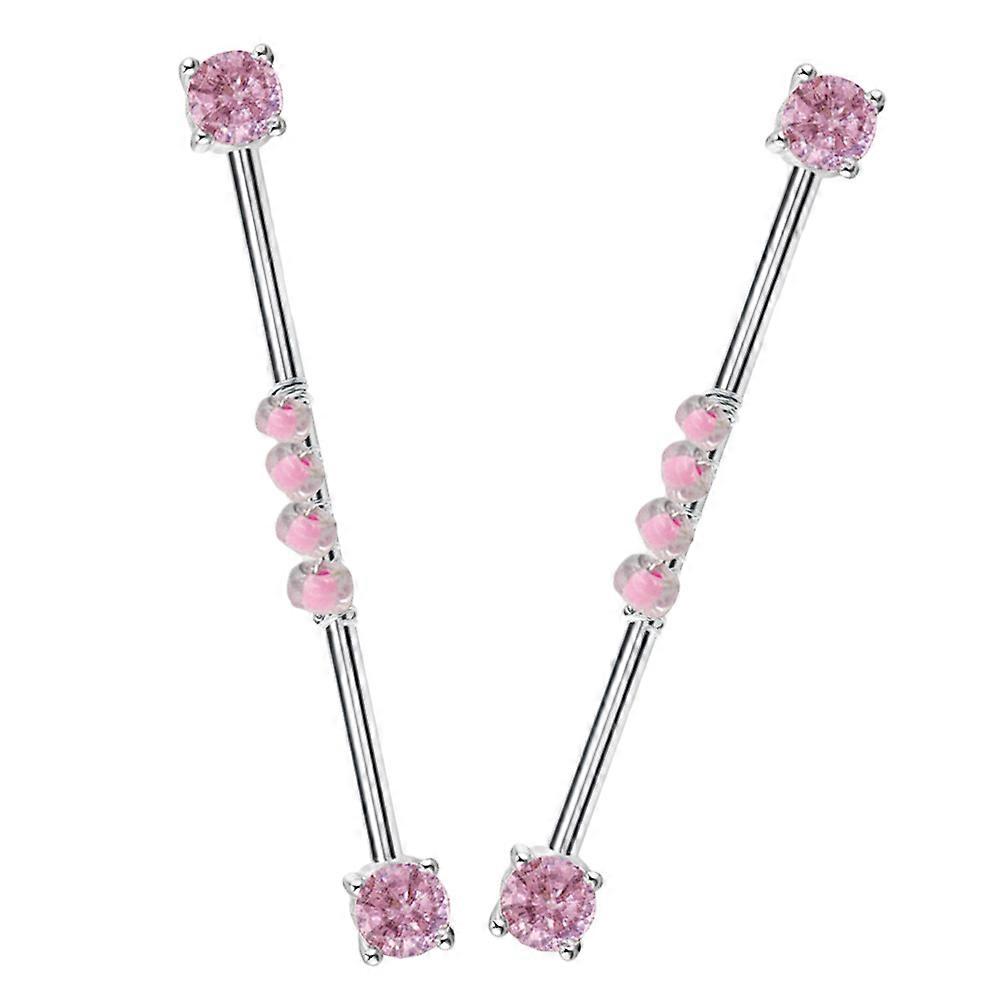 Titanium Steel Industrial Piercing Barbell Earrings for Women 6Pcs Pink Set