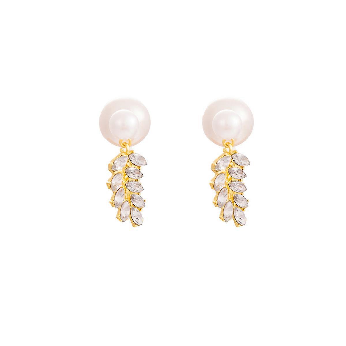 Silver Needle Two-Way Pearl Earrings, Sparkling Rhinestone Wheat Ear Design Earrings for Women