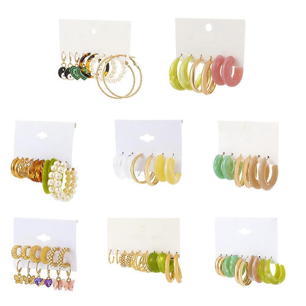 Pearl Earrings Circle Earrings Jewelry Daily Wear Alloy Material 8Sets