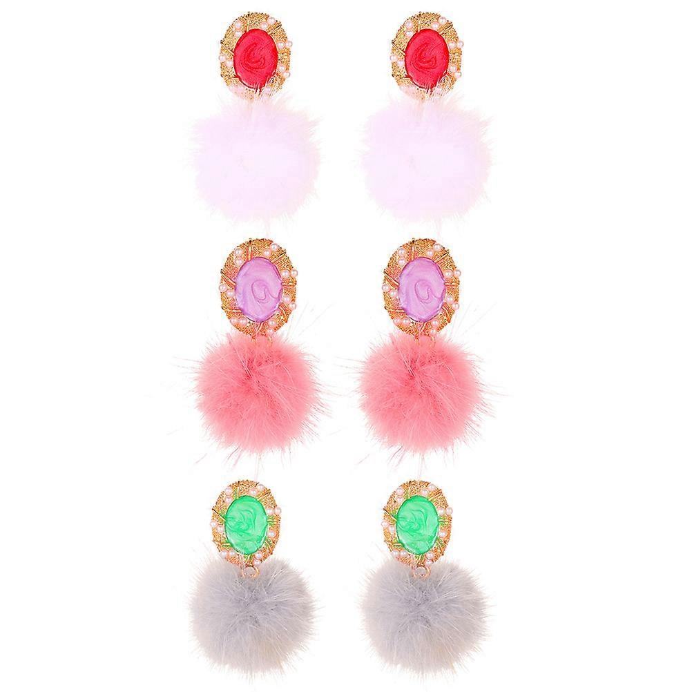 Pearl Earrings Retro Plush Earrings for Decoration 3Pairs Fashion Girl