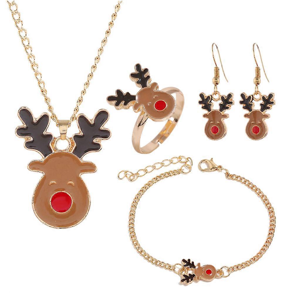 Earrings Bracelet Ring Elk Head Christmas Jewelry Sets for Women 2Pcs