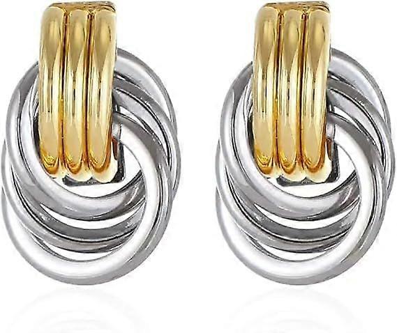 Silver and gold pendant earrings, retro metal French style earrings, two-color multi-layer round pendant earrings fashion geometric knot earrings