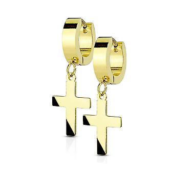 Hinged hoop earring with cross dangle surgical steel fit most ear piercings