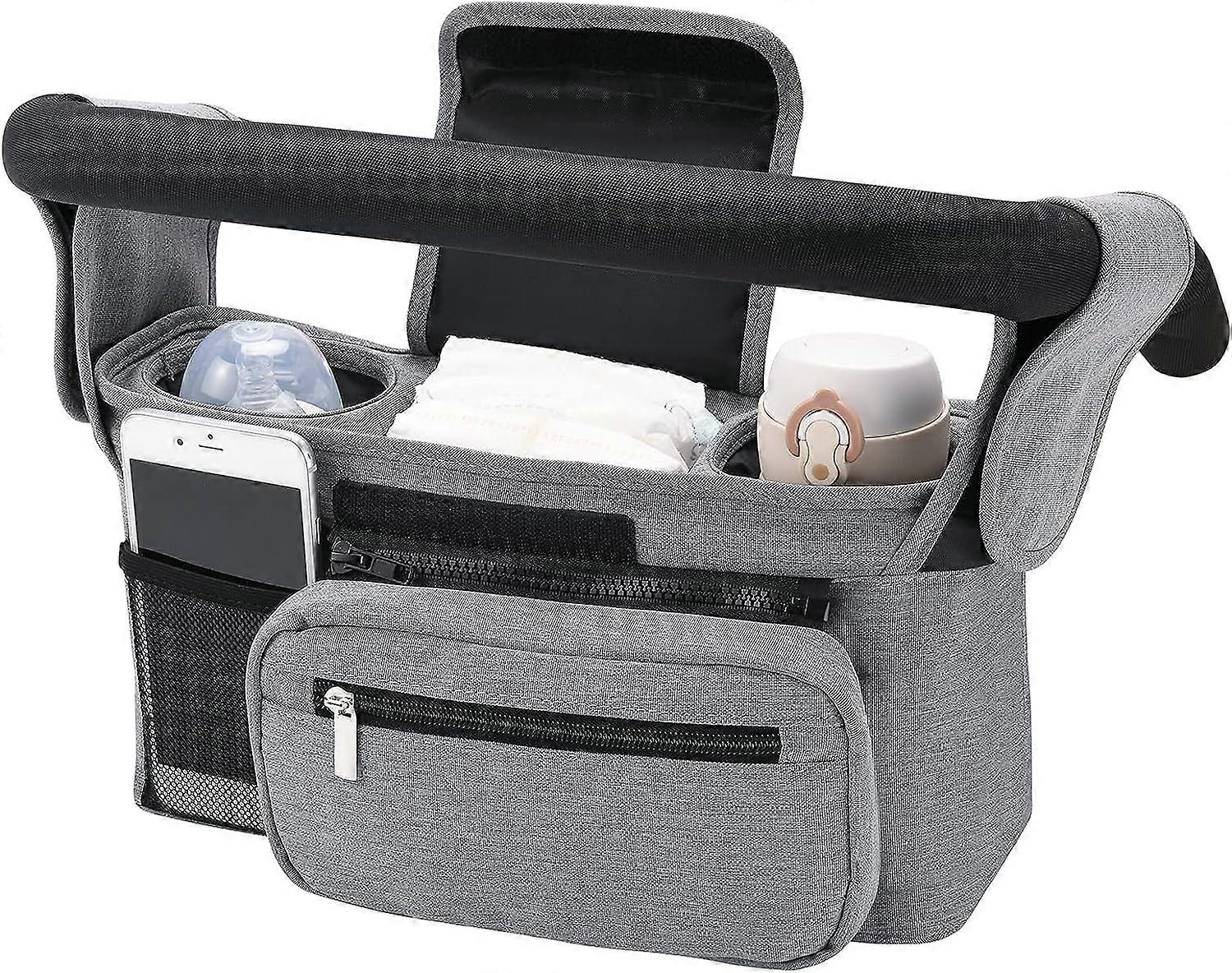 Stroller and Stroller Organizer, Universal Stroller Storage Bag with 2 Insulated Bottle Holders Cup Holder Gray,2024 Ping