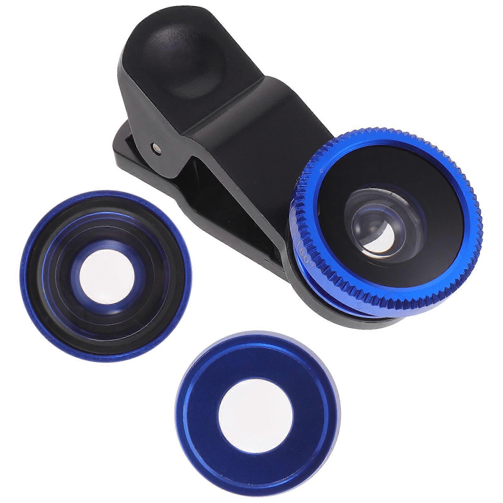 Universal Portable Cell Phone Camera Lens Super Wide Angle Lens Macro Lens and Fisheye Lens Clip on 3 in 1 Mobile Phone Lens for iPhone 6S/7/8/X (Blue